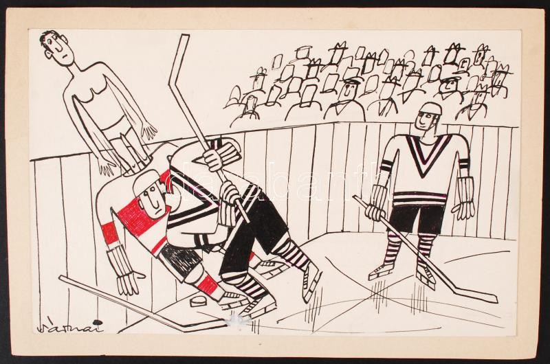 Várnai György (1921-1991): Hokis ütközés. Vegyes technika, papír, jelz... https://www.darabanth.com/de/210-Fernauktion/210.0/Andere-Sammelgebiete/Gemalde-und-Grafiken~600001/Varnai-Gyorgy-1921-1991-Hokis-utkozes-Vegyes-technika-papir-jelzett-15C39723-cm~II867573
