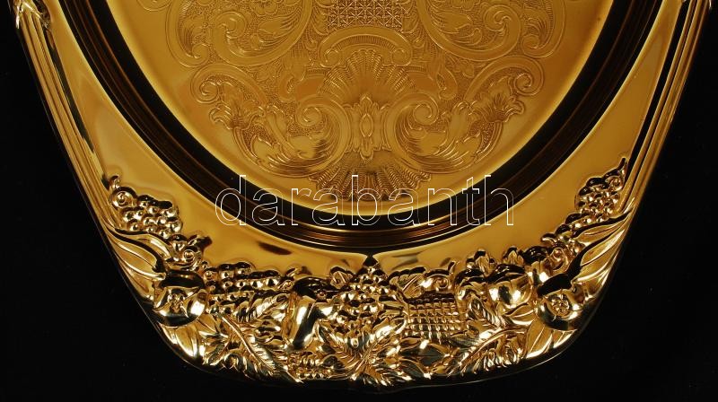 Beschreibung: "Baldwin" díszes, ólomkristály betétes kínáló tálca 27x45 cm