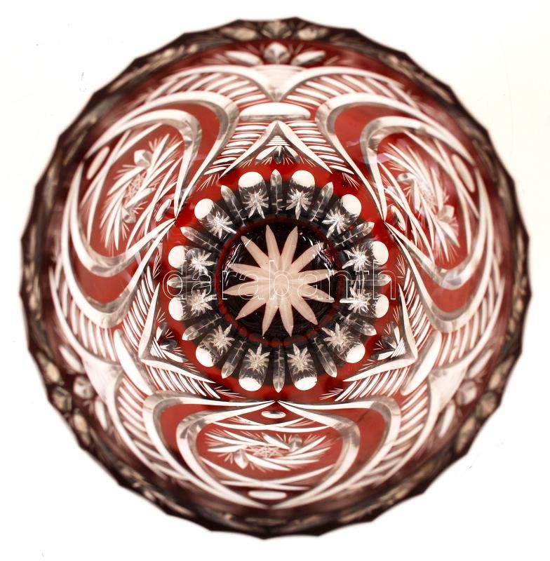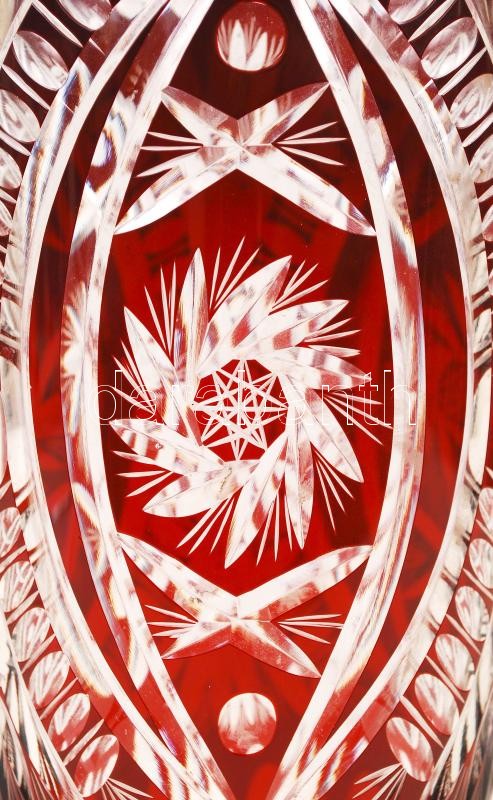Beschreibung: Rubinvörös üveg váza, többrétegű, csiszolt, hámozott, kis hibával, m:25 cm, d:13 cm