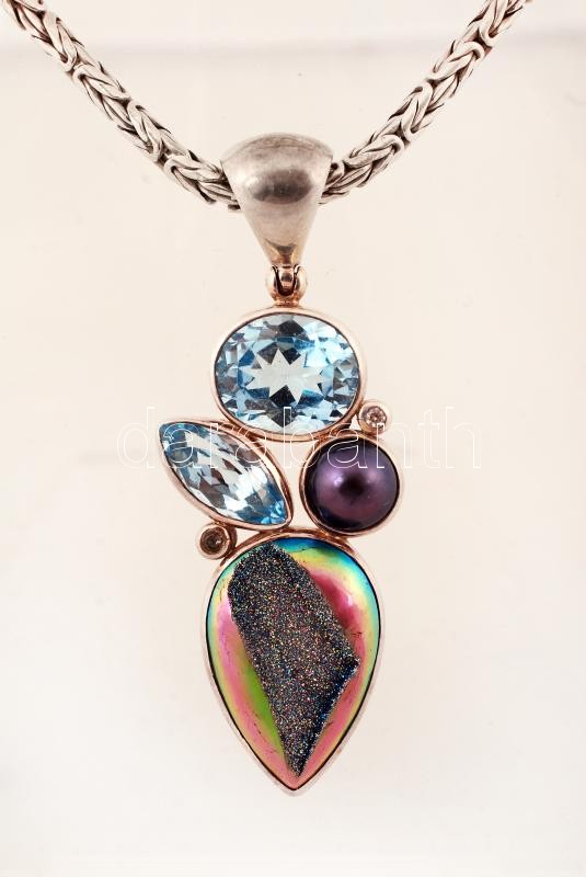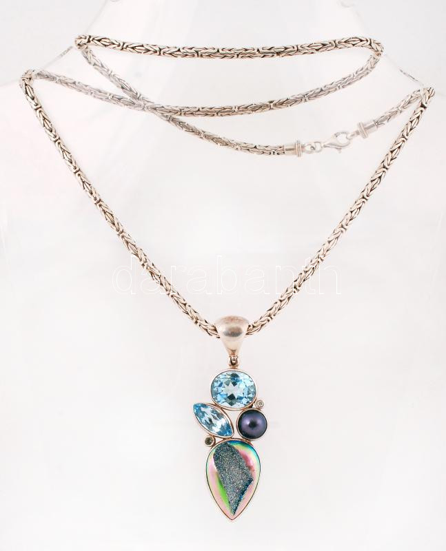 Beschreibung: Topáz kövekkel díszített ezüst (Ag) függő ezüst (Ag) nyakláncon, jelzett, h: 58 cm, br: 55,4 g /