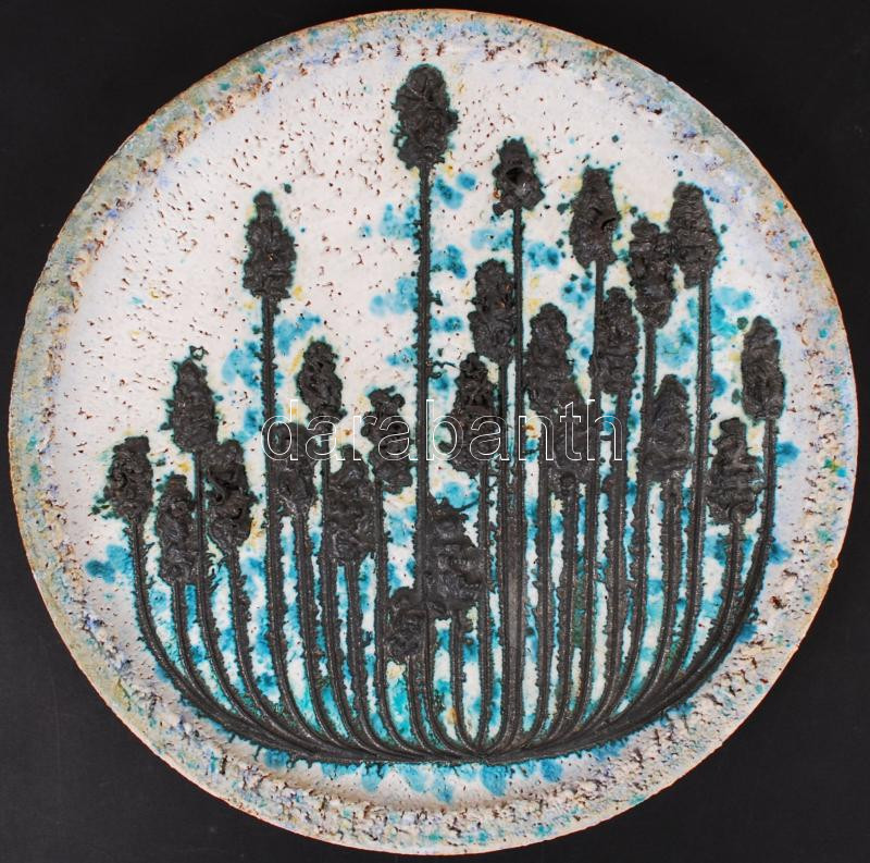 Beschreibung: M Kiss Katalin (1941-): Fali dísztál, kézzel festett kerámia, jelzett, hibátlan, d:34 cm
