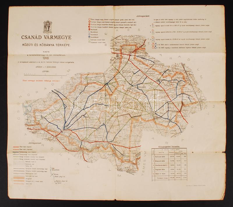 1918 Csanád vármegye közúti és kőbánya térképe 51x45 cm https://www.darabanth.com/de/210-Fernauktion/210.0/Andere-Sammelgebiete/Landkarten~600025/1918-Csanad-varmegye-kozuti-es-kobanya-terkepe-51x45-cm~II868257