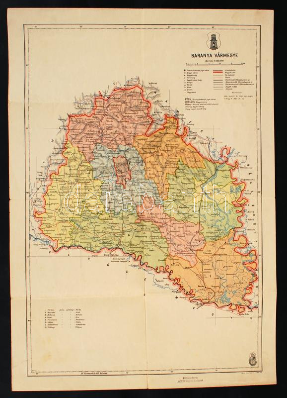 1941 Baranya vármegye térképe, M. kir. honv. Térk. Intézet, 50x35 cm https://www.darabanth.com/de/210-Fernauktion/210.0/Andere-Sammelgebiete/Landkarten~600025/1941-Baranya-varmegye-terkepe-M-kir-honv-Terk-Intezet-50x35-cm~II867652