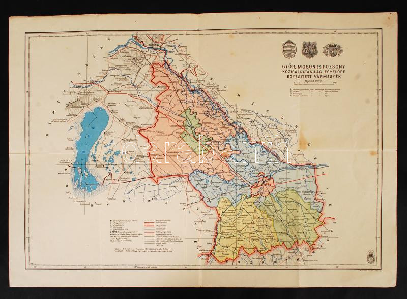 1941 Győr, Moson és Pozsony közigazgatásilag egyelőre egyesített várme... https://www.darabanth.com/de/210-Fernauktion/210.0/Andere-Sammelgebiete/Landkarten~600025/1941-Gyor-Moson-es-Pozsony-kozigazgatasilag-egyelore-egyesitett-varmegyek-terkepe-M-kir~II867637