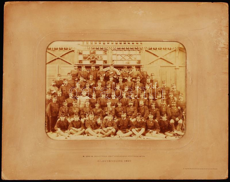 Beschreibung: 1890 K. und K. Infanterie Reg. Erzherzog Heinrich No. 51, gyalogos ezredről készült fotó kartonra kasírozva, fotó 23x17 cm, karton 37x30 cm