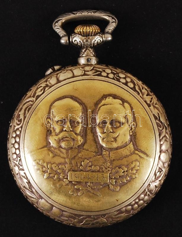 1914 Enigma zsebóra a szövetséges uralkodók Ferenc József és Vilmos császár képével. I. világháború, militária / World War I. military pocket watch with pictures of Emperors Franz Joseph, Wilhelm. Works well