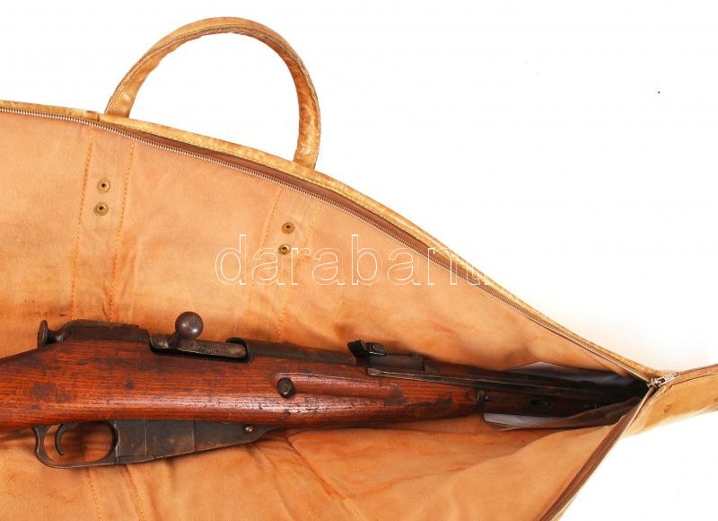 Beschreibung: Nagany hatástalanított katonai fegyver szuronnyal. Komplett 7,62 kaliber. Bőrtokkal / Russian military riffle with bayonet. Deactivated