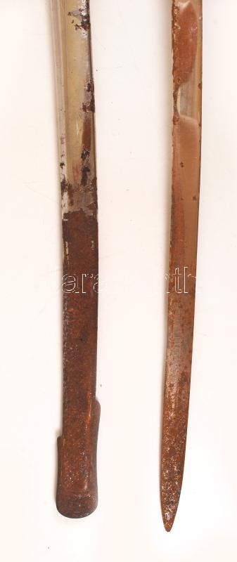 Beschreibung: cca 1860 Solingen Weyersberg & Stamm gyalogsági tiszti kard, bőr markolattal, hüvellyel. Kissé rozsdás