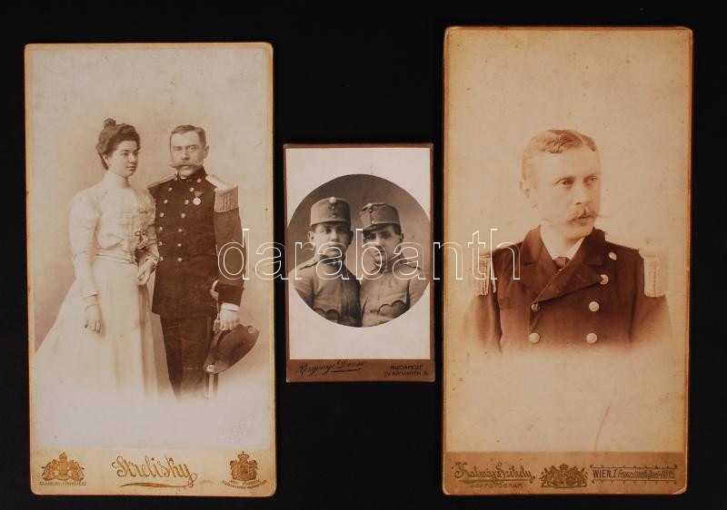 Beschreibung: cca 1880 3 db katonákat kitűntetésekkel ábároló keményhátú fotó / vintage military photos
