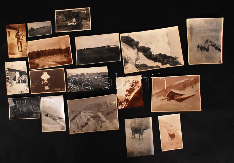 Beschreibung: cca 1914-1918 I. világháborús katonai fotók, főként az olasz frontról, több közölük hátoldalán feliratozva /
