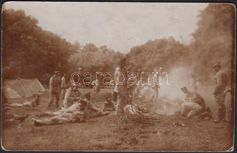 cca 1914-1918 Katonai táborban, fotólap, 9x14 cm https://www.darabanth.com/de/210-Fernauktion/210.0/Andere-Sammelgebiete/Militaria~600024/cca-1914-1918-Katonai-taborban-fotolap-9x14-cm~II865712