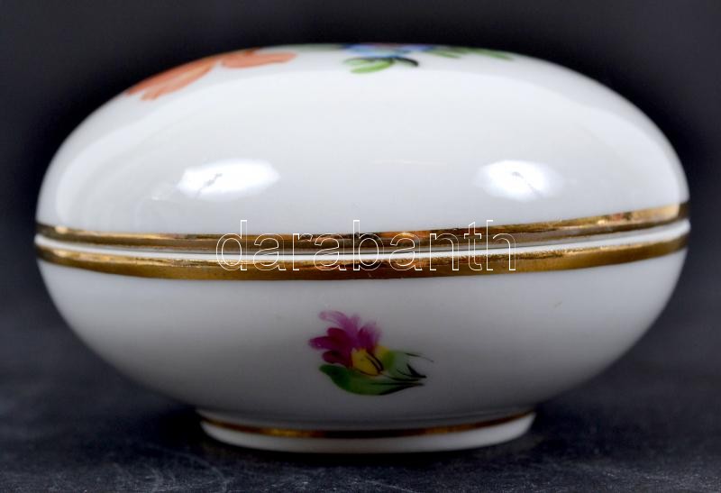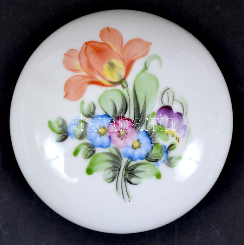 Beschreibung: Herendi virág mintás ékszeres dobozka, kézzel festett, jelzett, hibátlan,d:8 cm