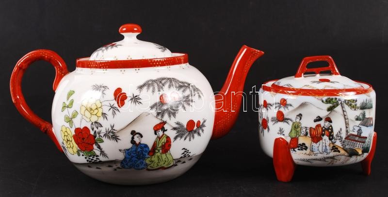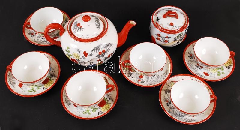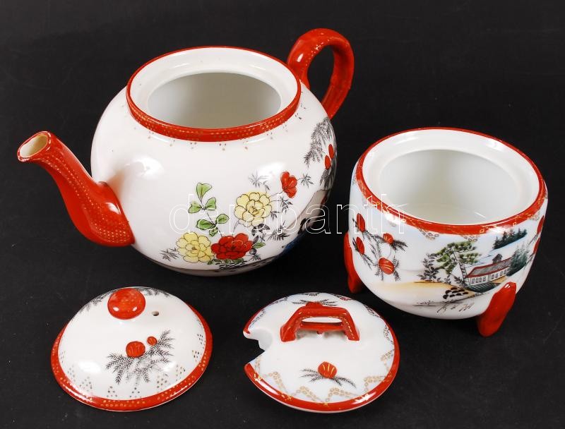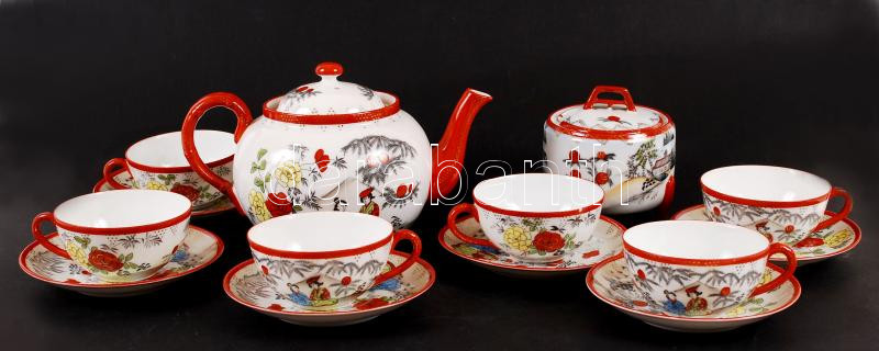 Beschreibung: Kínai hiányos teás készlet, kézzel festett, jelzett, hibátlan
