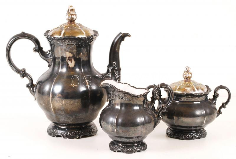 Beschreibung: Rosenthal ezüstözött teás készlet(2 db kiöntő, 1 cukortartó), jelzett, az ezüstözés több helyen lekopott