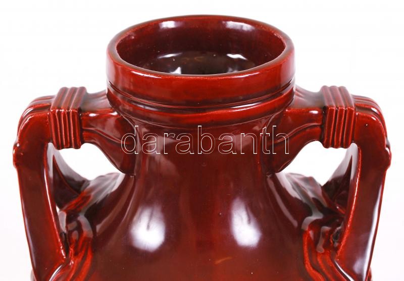 Beschreibung: Zsolnay fedeles padlóváza, ökörvér mázzal, körpecséttel jelzett, hibátlan, m:62 cm