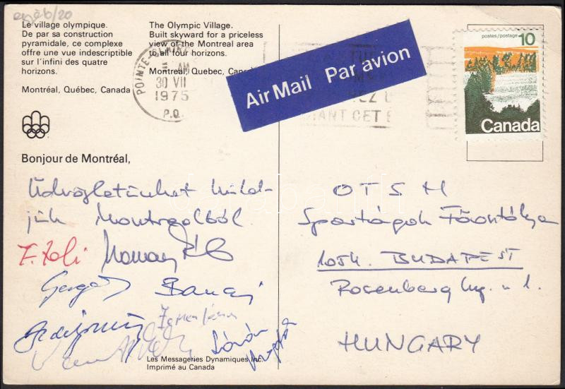 Beschreibung: 1975 Montreálból sportolók által küldött képeslap aláírásukkal
