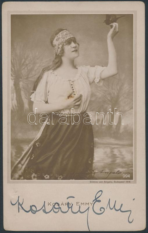 Kosáry Emmi (1889-1964) színésznő aláírása az őt ábrázoló fotóképeslap... https://www.darabanth.com/de/210-Fernauktion/210.0/Andere-Sammelgebiete/Signatur~600017/Kosary-Emmi-1889-1964-szineszno-alairasa-az-ot-abrazolo-fotokepeslapon~II868809