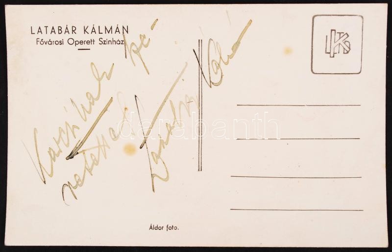 Beschreibung: Latabár Kálmán (1902-1970) színész aláírt fotólap