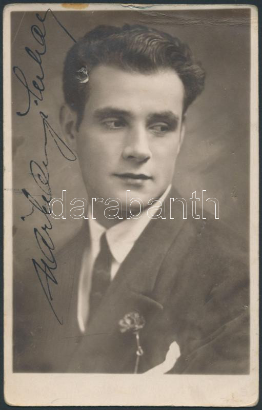 Beschreibung: Várkonyi Mihály (1891-1976), később Victor Varconi színész aláírása az őt ábrázoló fotóképeslapon