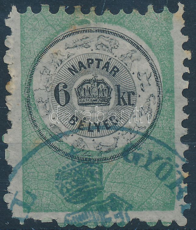 1870 6kr Naptárbélyeg, hártyapapír https://www.darabanth.com/de/210-Fernauktion/210.0/Andere-Sammelgebiete/Stempelmarken~600014/1870-6kr-Naptarbelyeg-hartyapapir~II863239