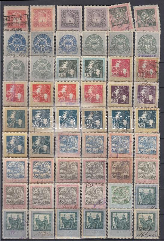 1898-2000 Illetékbélyeg összeállítás berakóban, összesen 1420 db és 13... https://www.darabanth.com/de/210-Fernauktion/210.0/Andere-Sammelgebiete/Stempelmarken~600014/1898-2000-Illetekbelyeg-osszeallitas-berakoban-osszesen-1420-db-es-130-db-par-illetve-os~II864523