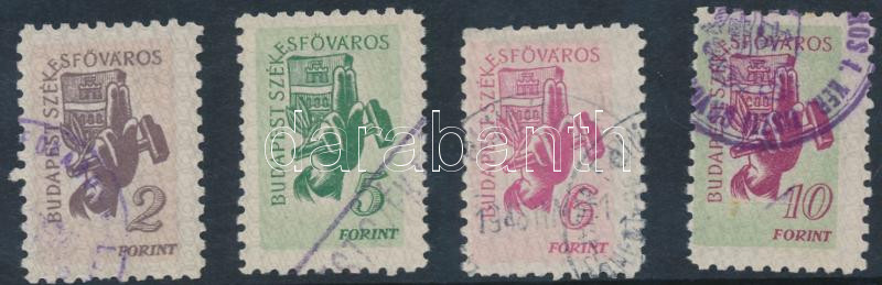 Beschreibung: 1947 Budapest városi illetékbélyeg, 8-as fogazás 2Ft, 5Ft, 6Ft, 10Ft