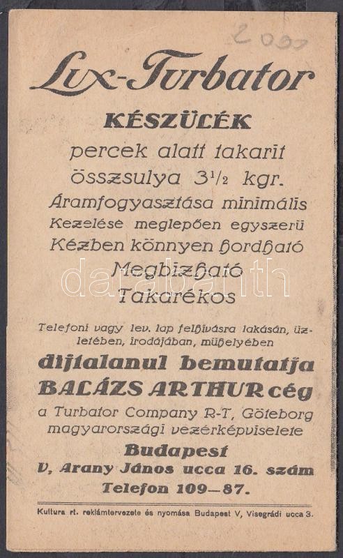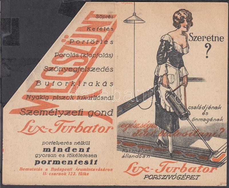 cca 1920-1930 Lux-Turbator takarító gép reklámja https://www.darabanth.com/de/210-Fernauktion/210.0/Andere-Sammelgebiete/Werbungen~600019/cca-1920-1930-Lux-Turbator-takarito-gep-reklamja~II868209