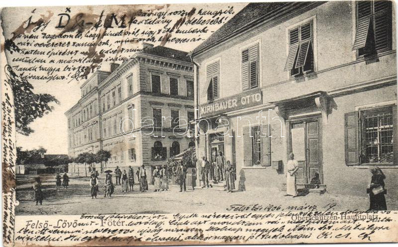 Beschreibung: Felsőlövő, Oberschützen; Főtér, Kirnbauer Otto üzlete / main square, shop (fl)