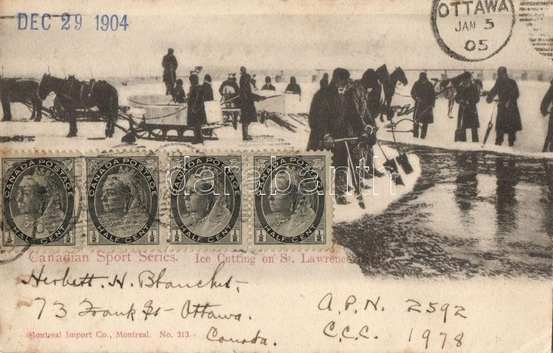 St. Lawrence river, Ice Cutting; Canadian Sport Series (EK) https://www.darabanth.com/de/210-Fernauktion/210.0/Ansichtskarten/Kanada~44/St-Lawrence-river-Ice-Cutting-Canadian-Sport-Series-EK~II864685