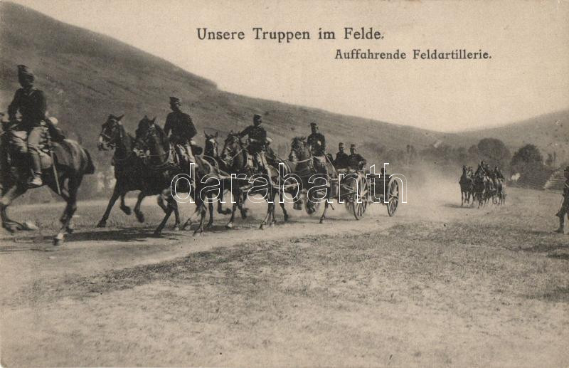 Auffahrende Feldartillerie / Artillery, B.K.W.I. 828-37 https://www.darabanth.com/de/210-Fernauktion/210.0/Ansichtskarten/Militaria~51/Auffahrende-Feldartillerie-Artillery-BKWI-828-37~II862332