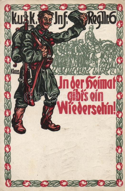 'In der Heimar gibt's ein Wiederseh'n' K.u.K. Inf. Reg. Nr. 6. / Austr... https://www.darabanth.com/de/210-Fernauktion/210.0/Ansichtskarten/Militaria~51/In-der-Heimar-gibts-ein-Wiedersehn-KuK-Inf-Reg-Nr-6-Austrian-infantry-regiment-s-Klaus~II864692