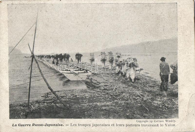 Russo-Japanese War, Japanese troops and their bearers through the Yalu... https://www.darabanth.com/de/210-Fernauktion/210.0/Ansichtskarten/Militaria~51/Russo-Japanese-War-Japanese-troops-and-their-bearers-through-the-Yalu-river-small-tear~II867675
