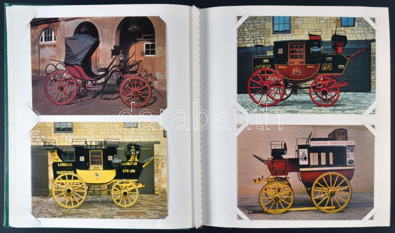152 db MODERN használatlan lovas hintó és ló motívumú képeslap, képeslapalbumban / 152 modern unused motive cards; horse-drawn carriage and horse, in postcard album