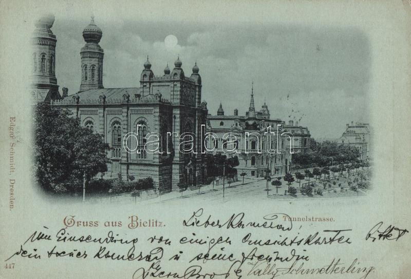 1898 Bielsko, Bielitz; Tunnelstrasse / street, synagogue https://www.darabanth.com/de/210-Fernauktion/210.0/Ansichtskarten/Polen~48/1898-Bielsko-Bielitz-Tunnelstrasse-street-synagogue~II862038