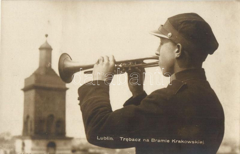 Lublin, Trebacz na Bramie Krakowskiej / Krakow's gate, trumpeter https://www.darabanth.com/de/210-Fernauktion/210.0/Ansichtskarten/Polen~48/Lublin-Trebacz-na-Bramie-Krakowskiej-Krakows-gate-trumpeter~II867944