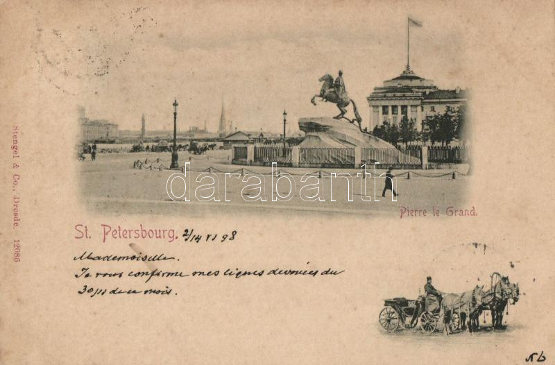 1898 Saint Petersburg, Pierre le Grand / statue https://www.darabanth.com/de/210-Fernauktion/210.0/Ansichtskarten/RuC39Fland~64/1898-Saint-Petersburg-Pierre-le-Grand-statue~II867406