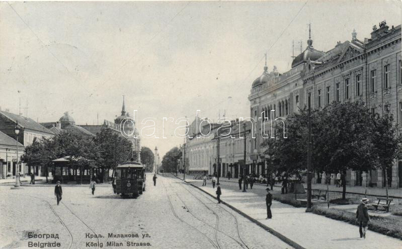 Belgrade, König Milan Strasse / street, tram https://www.darabanth.com/de/210-Fernauktion/210.0/Ansichtskarten/Serbien~72/Belgrade-Konig-Milan-Strasse-street-tram~II864898