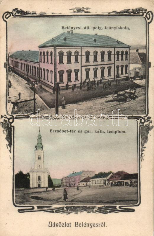 Belényes, Leányiskola, Erzsébet tér, Görög katolikus templom / Girl sc... https://www.darabanth.com/de/210-Fernauktion/210.0/Ansichtskarten/Siebenburgen~6/Belenyes-Leanyiskola-Erzsebet-ter-Gorog-katolikus-templom-Girl-school-square-Greek-cath~II864526