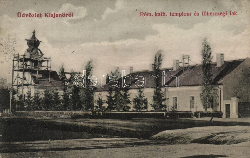 Beschreibung: Kisjenő, Római katolikus templom építés alatt, Főhercegi lak / church under construction, Archduke's place (EK)