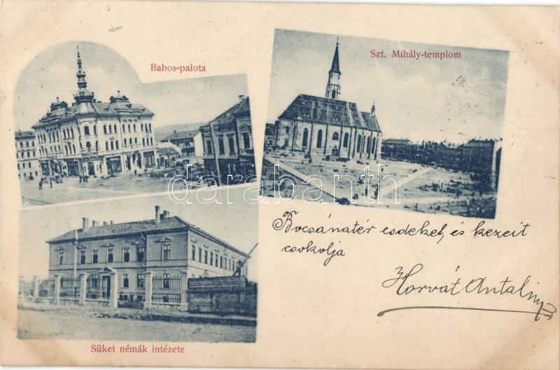Kolozsvár, Babos palota, Szent Mihály templom, Süketnémák intézete / p... https://www.darabanth.com/de/210-Fernauktion/210.0/Ansichtskarten/Siebenburgen~6/Kolozsvar-Babos-palota-Szent-Mihaly-templom-Suketnemak-intezete-palace-church-deaf-mute~II862318