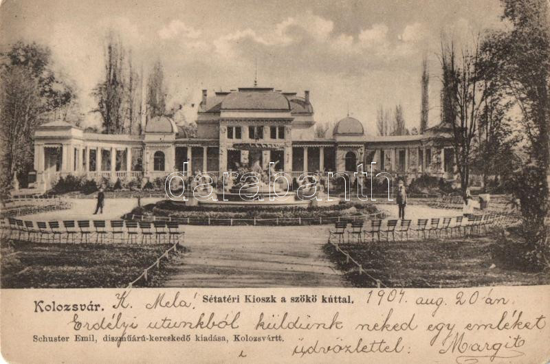 Beschreibung: Kolozsvár, Sétatéri kioszk, szökőkút, Schuster Emil kiadása / kiosk, fountain (EB)