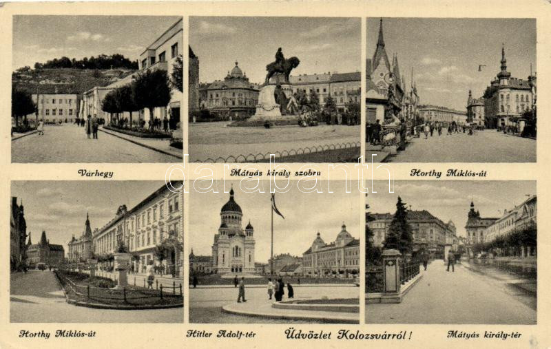 Kolozsvár, Várhegy, Mátyás király szobra, Horthy Miklós tér és út, Hit... https://www.darabanth.com/de/210-Fernauktion/210.0/Ansichtskarten/Siebenburgen~6/Kolozsvar-Varhegy-Matyas-kiraly-szobra-Horthy-Miklos-ter-es-ut-Hitler-ter-Matyas-ki~II865548