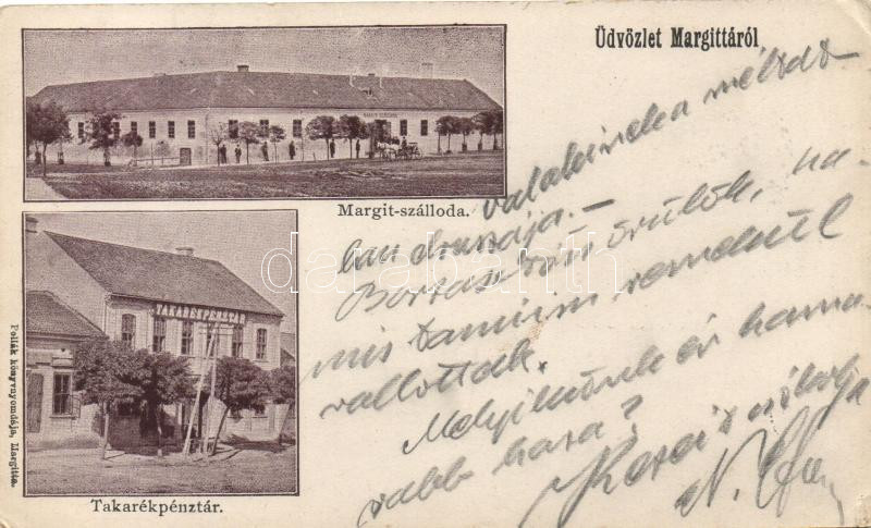 Margitta, Margit szálloda, Takarékpénztár / hotel, savings bank (EK) https://www.darabanth.com/de/210-Fernauktion/210.0/Ansichtskarten/Siebenburgen~6/Margitta-Margit-szalloda-Takarekpenztar-hotel-savings-bank-EK~II863940