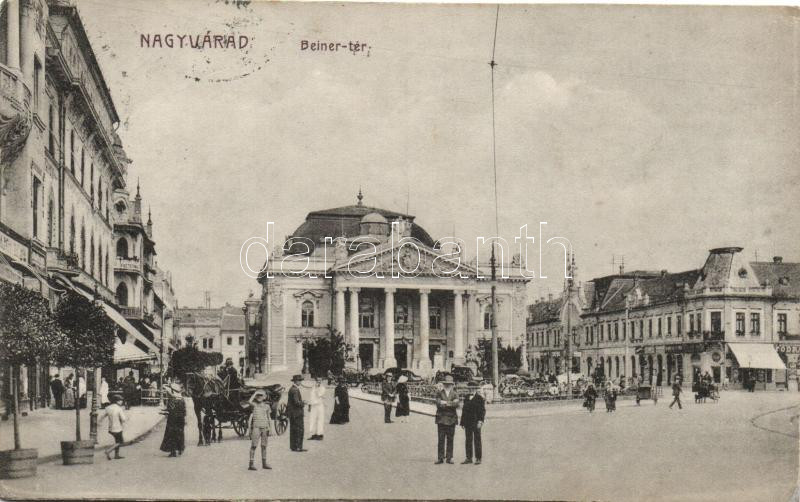 Nagyvárad, Beiner tér, színház, fodrász / square, theatre, hairdresser https://www.darabanth.com/de/210-Fernauktion/210.0/Ansichtskarten/Siebenburgen~6/Nagyvarad-Beiner-ter-szinhaz-fodrasz-square-theatre-hairdresser~II864407
