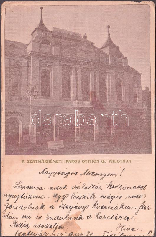 Szatmárnémeti, Iparos otthon új palotája, sörcsarnok / Craftsman home'... https://www.darabanth.com/de/210-Fernauktion/210.0/Ansichtskarten/Siebenburgen~6/Szatmarnemeti-Iparos-otthon-uj-palotaja-sorcsarnok-Craftsman-homes-new-palace-beer-hall-~II862412