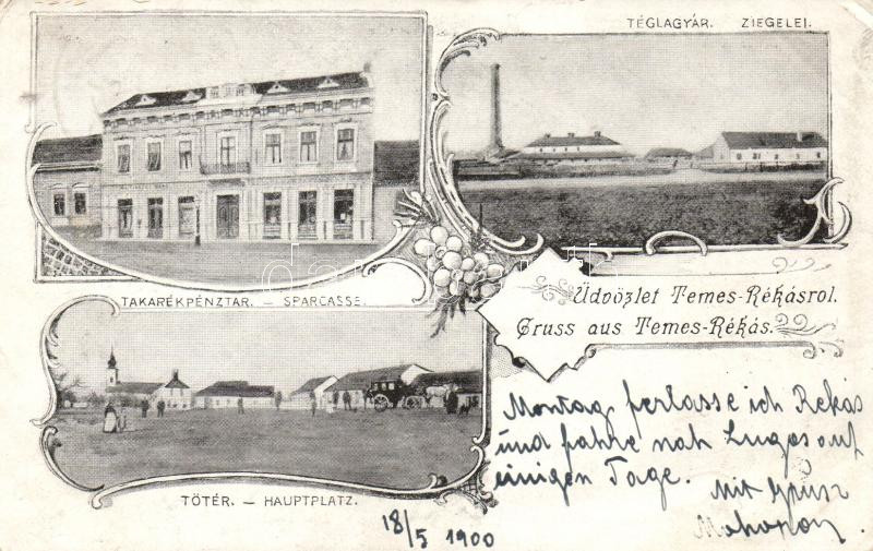 Beschreibung: Temesrékás, Takarékpénztár, Fő tér, Téglagyár / bank, square, brick factory Art Nouveau (EB)