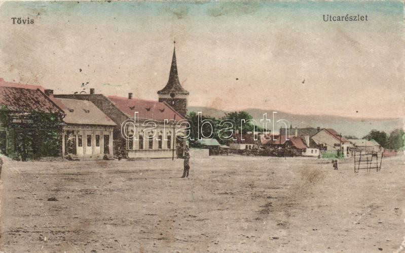 Beschreibung: Tövis, utca, Ábrahám Testvérek üzlete / street, shop (EB)