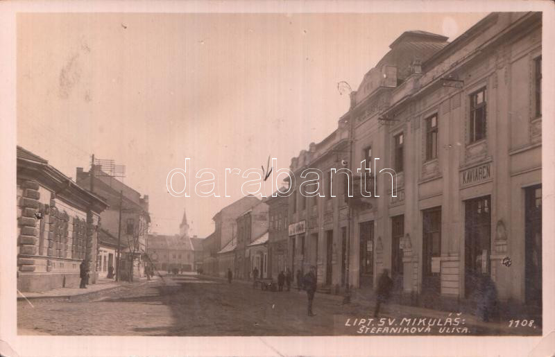 Liptószentmiklós, Stefanikova ulika, utca, Europa szálloda, Kaviaren, kávézó, Jadelan, étterem / street, hotel, cafe, restaurant (EK)