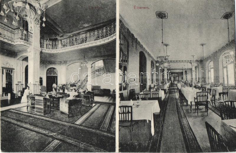 Beschreibung: Tátralomnic, Hotel Palace szálló, étterem, Kuszmann Gyula kiadása, belső / hotel, restaurant, interior,