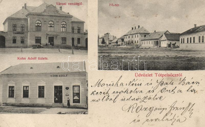 Tótpelsőc, Városi vendéglő, Fő tér, Kohn Adolf üzlete / restaurant, ma... https://www.darabanth.com/de/210-Fernauktion/210.0/Ansichtskarten/Slowakei~7/Totpelsoc-Varosi-vendeglo-Fo-ter-Kohn-Adolf-uzlete-restaurant-main-square-shop-fa~II862730